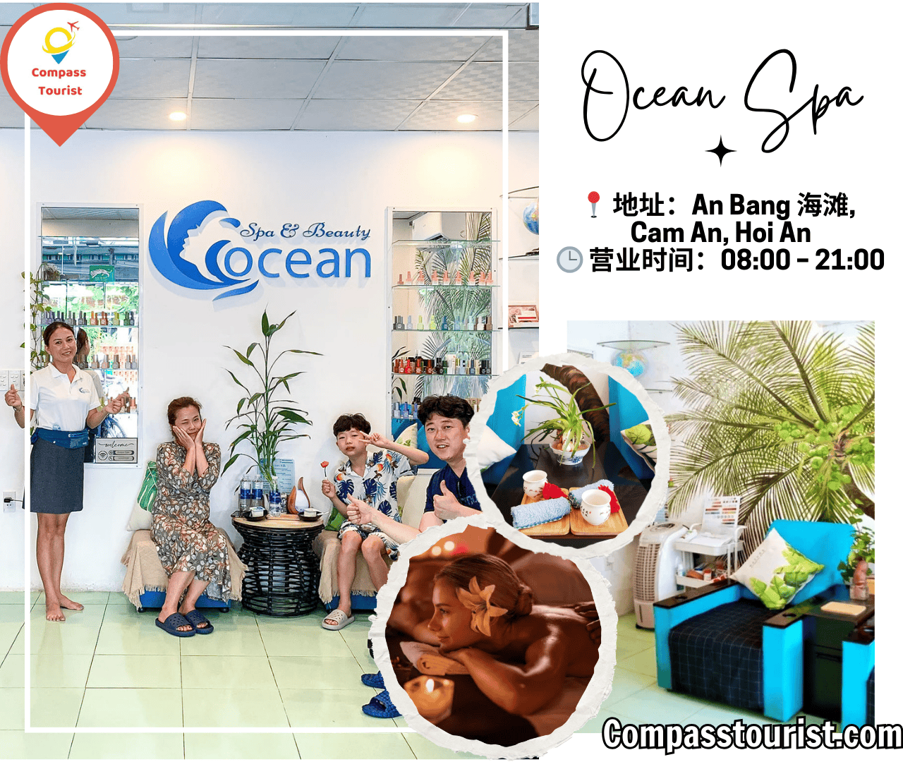 Ocean Spa 距离海滩只有几步之遥,竹质装饰与海风气息让人仿佛置身海边度假。这里提供热石按摩、竹子按摩以及传统越式按摩,还可以搭配面部护理和美甲服务。环境干净舒适、员工友好,是想在海边享受放松按摩的游客的理想选择。在这里,你可以一边感受轻柔的海风,一边享受专业理疗师带来的舒缓按摩,让身体和心情都慢慢放松下来。许多游客特别喜欢在游泳或海滩活动之后来到这里做一次按摩,既能缓解疲劳,也能恢复活力。温馨的服务、宁静的环境以及贴心的细节,让每一次水疗体验都更加难忘。