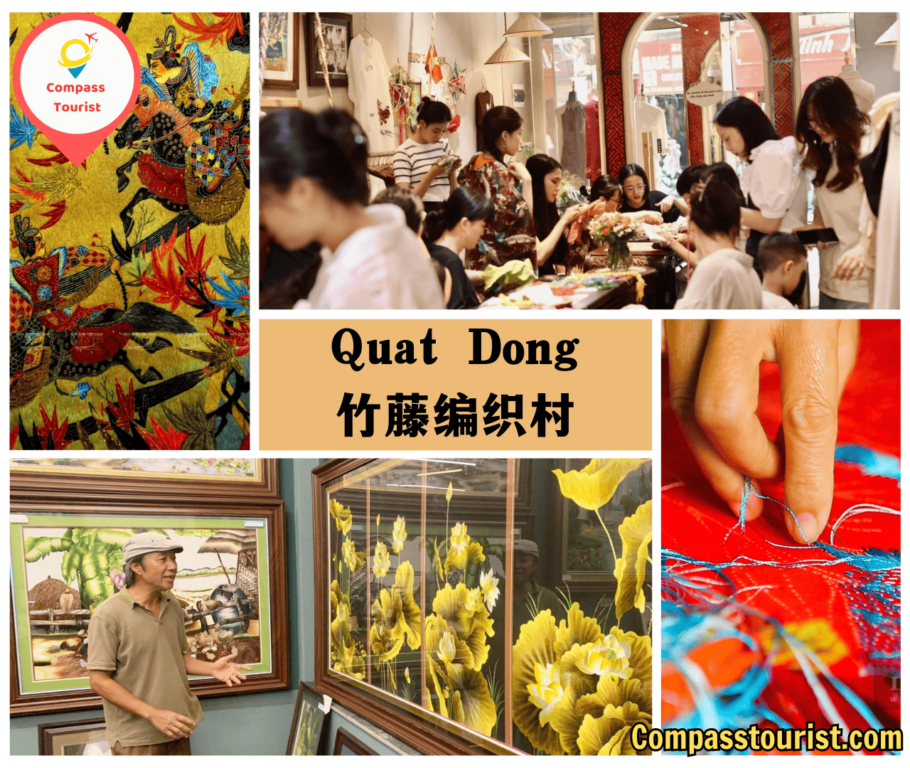 Quat Dong竹藤编织村是河内著名的传统手工艺村。该村拥有近400年的历史,它始建于1700年,归功于艺人们的巧手,他们制作的竹藤产品极其细致、编织的花纹独特精巧、非常美观。为了制成这样的产品,工匠必须深入了解制作材料,并认真处理从选购、原料加工到制作的各个环节。